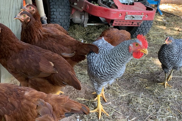Chicken care: feeding, egg collection, fresh water